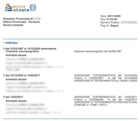 Unlike the "simple" visura, which shows only the data updated today, the historical visura allows you to trace the cadastral history of the property.